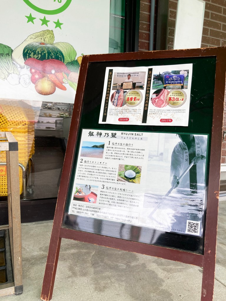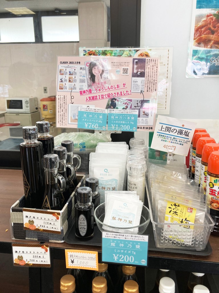 平生町の「ひらお物産品センター」にて龍神乃鹽の取り扱いがスタート致しました。正面玄関入って奥の調味料コーナーにて龍神乃鹽を販売して頂いております。農産品、農産加工品、水産加工品など付加価値の高い特産品を多数販売している「ひらお物産品センター」は国道188号線沿いトリコローレカラー(緑・白・赤)の屋根が目印。お近くにお越しの際は是非ご利用下さいませ。