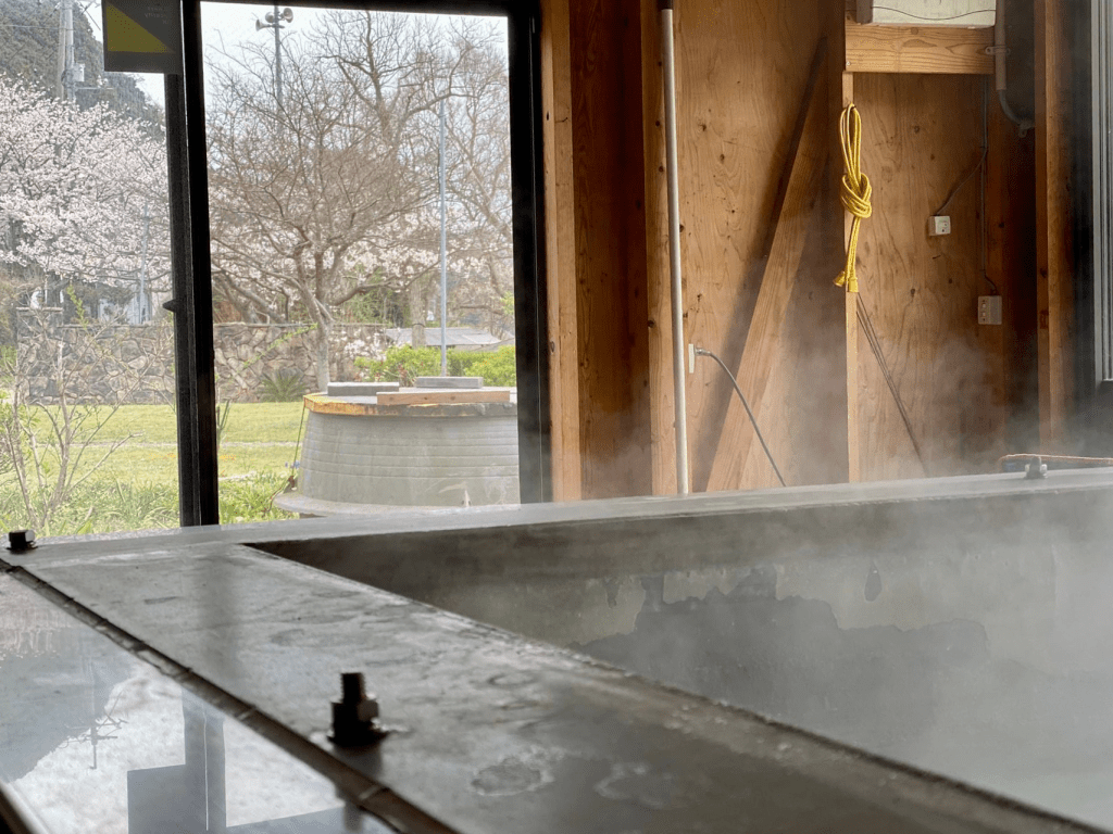 今、その鹽は平釜の中で「育っている」最中です。