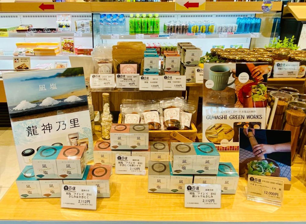 ・龍神乃鹽の新ブランド「凪塩」3種と島外初の販売となります「龍神乃鹽梅」「龍神乃幸梅」の梅干し2種です。