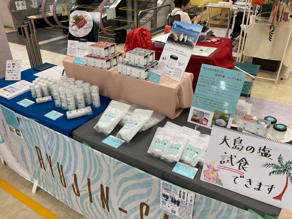 サンリブ下松店「Bon marche」出店のお知らせ 投稿者: ryujin-salt 投稿日: 2024年8月17日2024年8月17日 本日8/17(土)と明日8/18(日)に下松市のサンリブ下松店にて開催中の「Bon marche」に龍神乃鹽も出店しております。下松サンリブ店の涼しい店内にハンドメイドの作品や、アクセサリーのワークショップなど色とりどりの賑やかなお店が出店。夏休みの思い出つくりにもピッタリのマルシェです。 マルシェの時間は両日ともに9:30~17:00です。龍神乃鹽は周防大島高校の生徒たちが元気いっぱいに販売しております。 お近くにお越しの際はぜひお立ち寄りくださいませ。 共有: クリックして X で共有 (新しいウィンドウで開きます) X Facebook で共有するにはクリックしてください (新しいウィンドウで開きます) Facebook いいね 読み込み中…